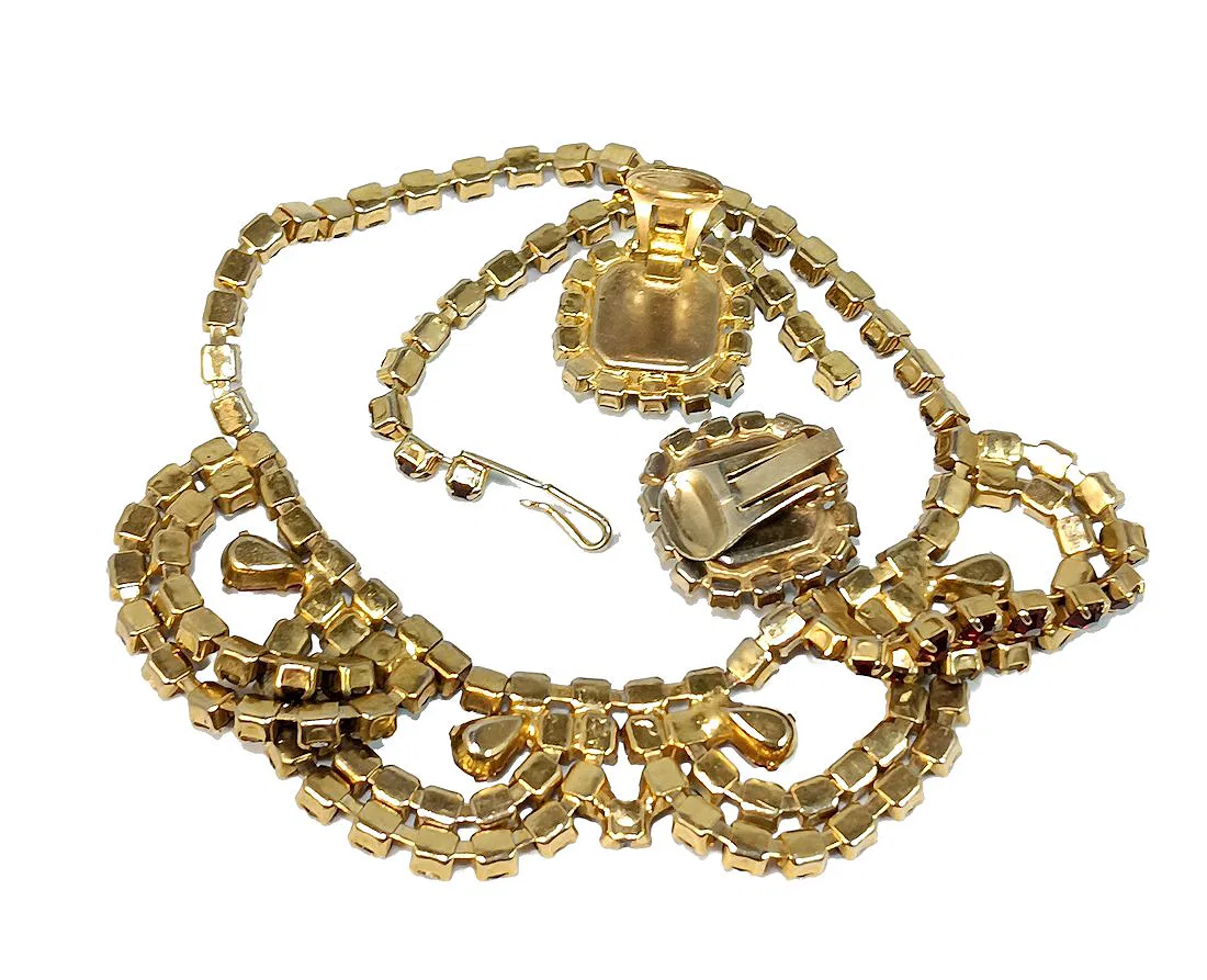 SKU: a-mid-century-vintage-rhinestone-necklace-earrings-set-red-2 Category: