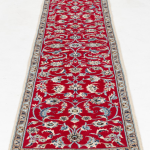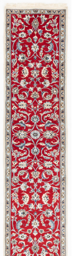 This exquisite Persian hand-knotted runner features a luminous crimson field adorned with finely detailed floral arabesques ? a signature of the classical Nain / Kashan weaving tradition. Crafted from high-quality wool enhanced with natural silk highlights, it offers exceptional elegance, density, and refined sheen. A timeless masterpiece for grand hallways or luxury interiors that value Persian artistry and enduring cultural prestige.
