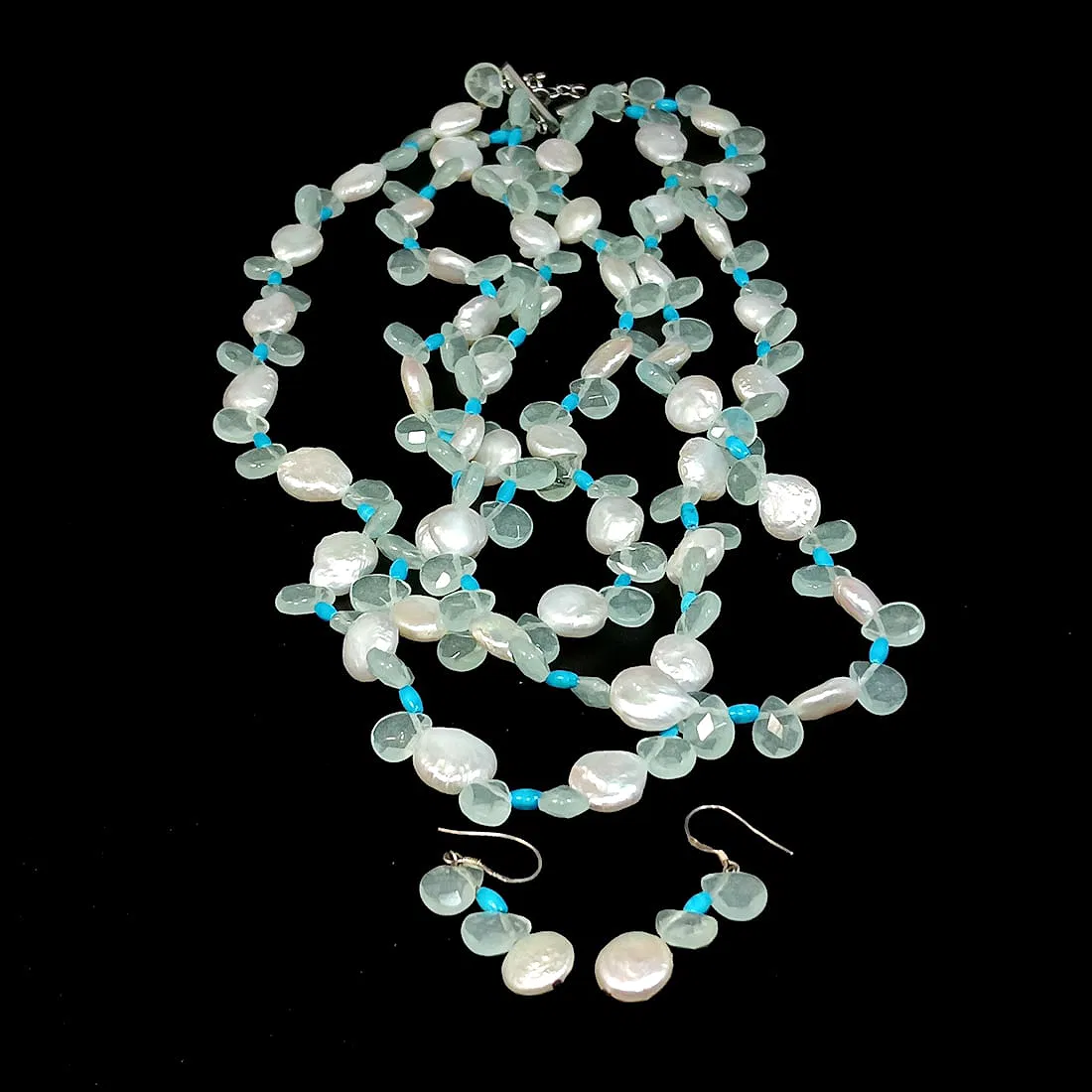 A WONDERFUL NECKLACE AND EARRINGS SET PEARLS TURQUOISE QUARTZ 3