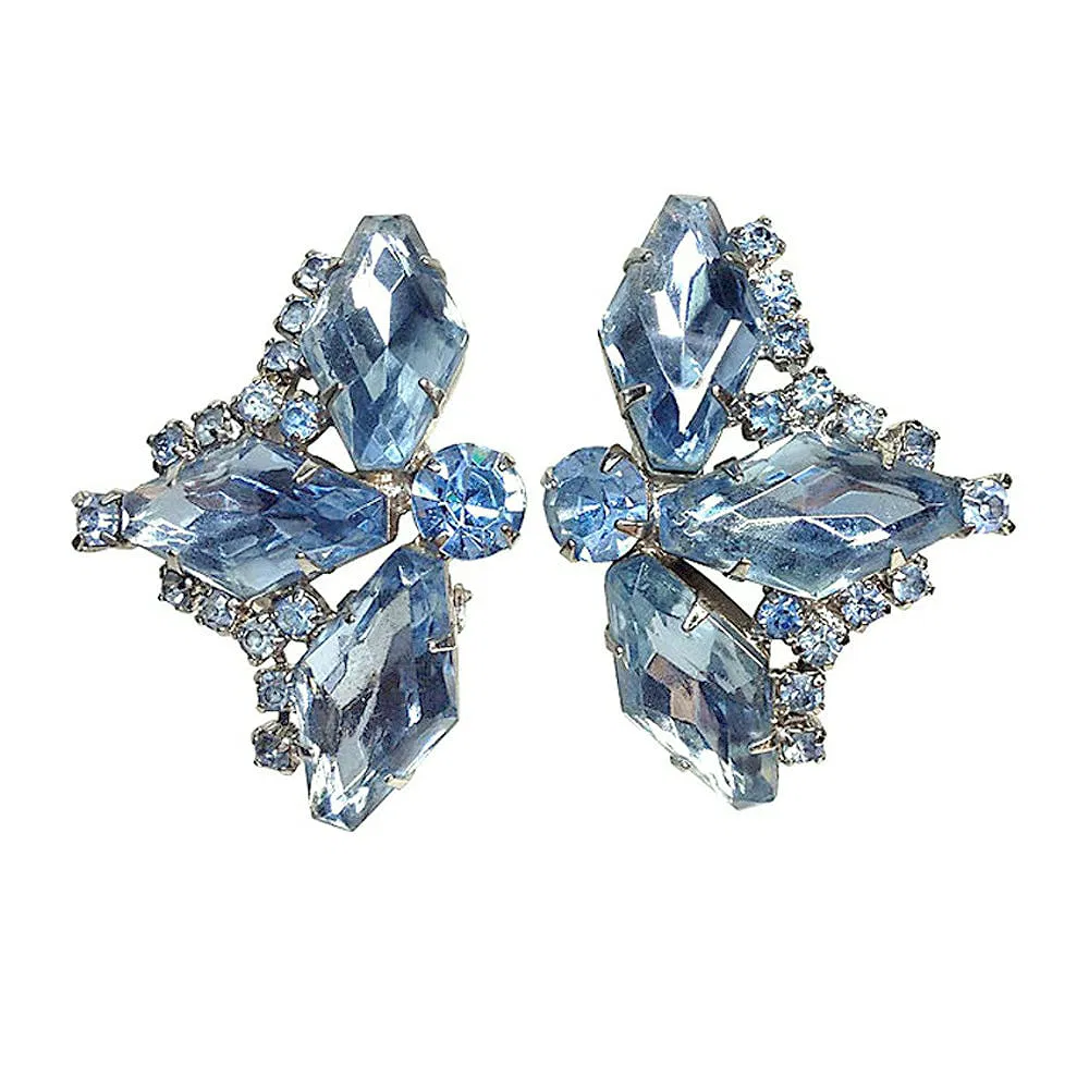 Juliana Style Blue Tri-Point Rhinestone Earrings 1