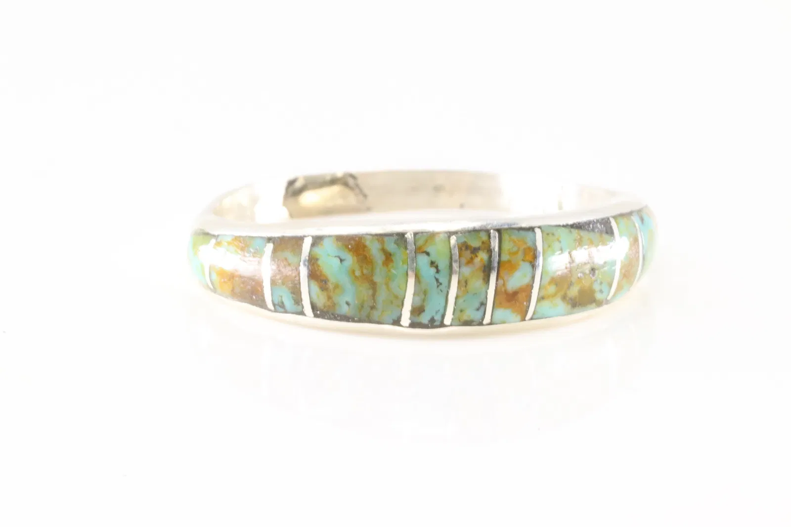 Native America Navajo Sterling Silver Turquoise Inlay Ring. 3