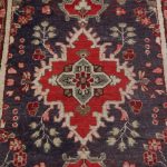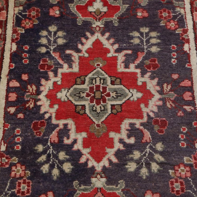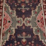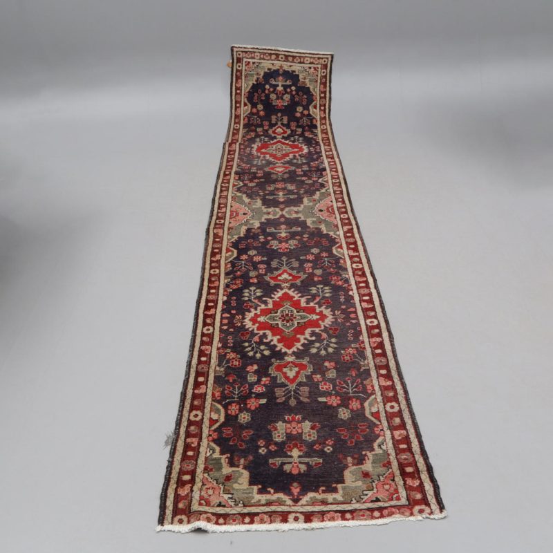 An original Hamadan village runner hand-knotted in Western Iran, featuring a dark indigo field with angular diamond medallions framed by brick-red borders. Its rich tribal character, strong visual rhythm, and durable wool structure make it a refined choice for hallways seeking warmth, tradition, and lasting elegance.translate in mongolia.