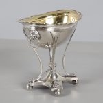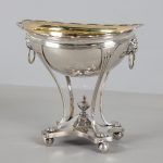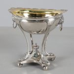 Stamped, raised on paw base, gilt inside, openwork edge, lion mascarons with rings, ball feet, height approx. 18 cm, 18.5×14.5 cm, weight approx. 630 g
