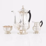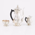 Coffee-pot (20 cm), cream-pot (8 cm), sugar-bowl (5 cm). Total weight 747 grams