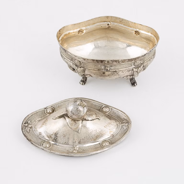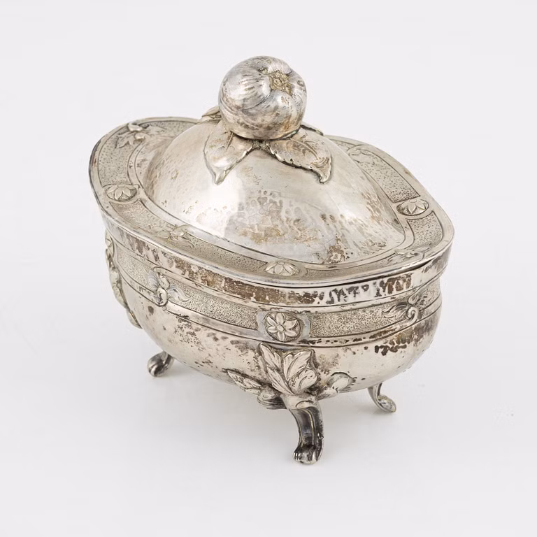 Rococo style sugar bowl, Swedish import marks, Firma Carlman, 1927. L 15 ? H 13 cm, 367g.